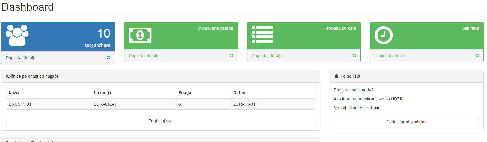 LOGIRAJ SE REGISTRIRAJ SETri su osnovne funkcionalnosti: 1. Unos dnevnih inspekcija. 2. Praćenje prinosa i vrcanje. 3. Praćenje prodaje. Sve to je olakšano primjenom oku ugodnih grafova koji ostavljaju bez teksta jer je tekst ionako precijenjen.